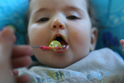Maggie has reached the stage of eating that I like to refer to as the 'A Clockwork Orange' feeding stage. I tried to find a clip or still of it online, but failed. If you've seen the movie, then you know what I'm talking about, but basically every time her mouth is empty, she pops it open wide as a signal for me to deliver the next bite. It's hilarious.
