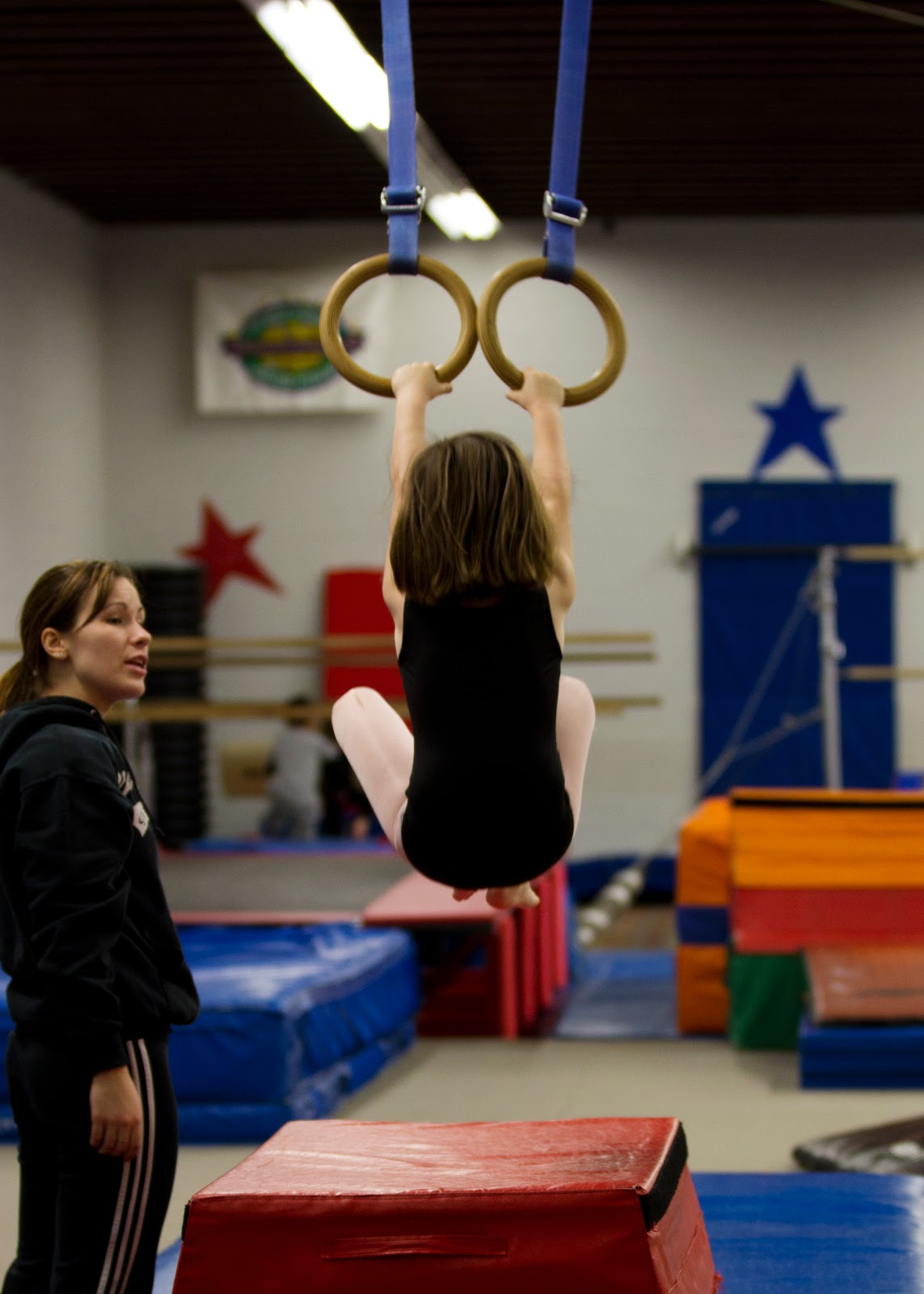 But when we're not at hockey, we're at gymnastics! Which, oddly enough, smells a lot like a hockey locker room...
